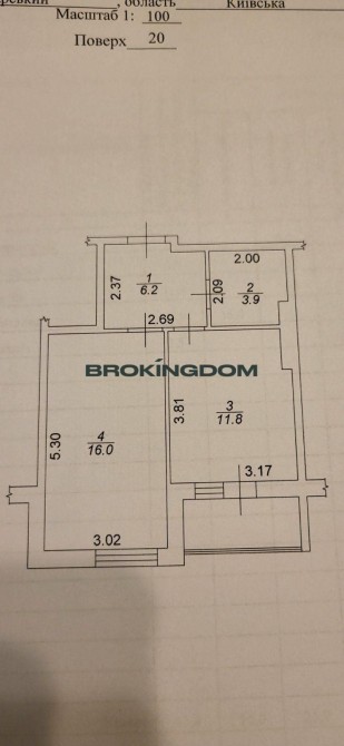 у т.ч. квартира — 41.6 м², узаконена окрема кладова — 2.9 м² (поруч з квартирою)