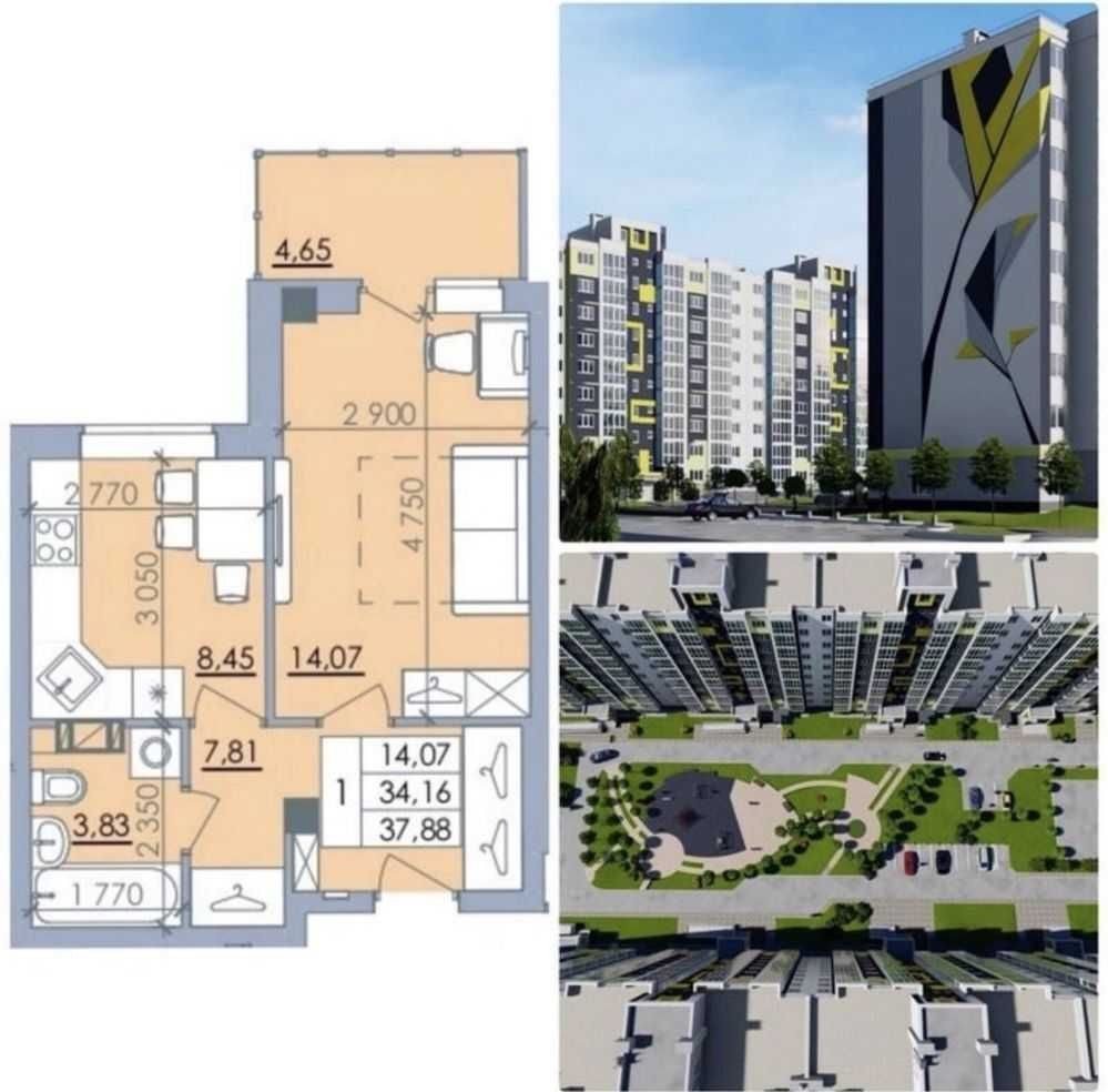 1-к квартира ЖК «Пелюстковий» — 38 м², 4 поверх, автономне опалення