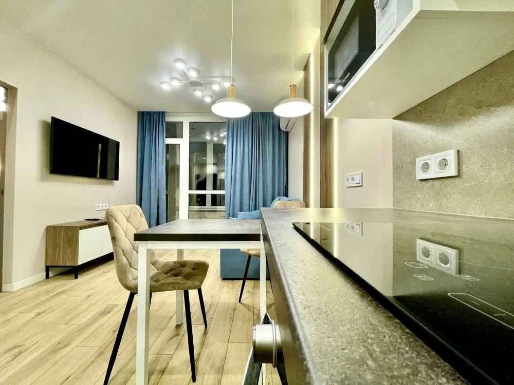 Якісна побутова техніка: посудомийна машина, вбудовані духова шафа та мікрохвильова піч, варильна поверхня, холодильник, кондиціонер, бойлер на 100л, пральна машина та сушильна машини, електросушка для рушників + великий телевізор в кухні-студіо. Система фільтрації води - зворотній осмос,