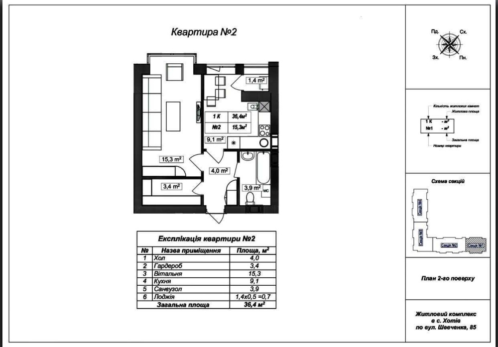 Площа: 36,4 м²