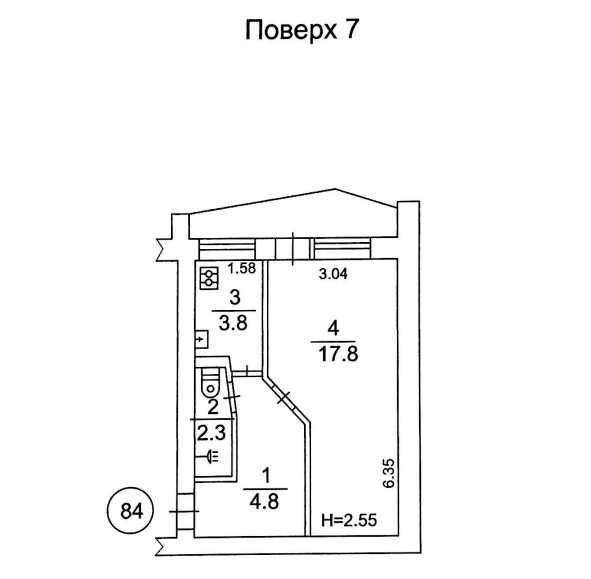 • Площадь кухни 4 м2
