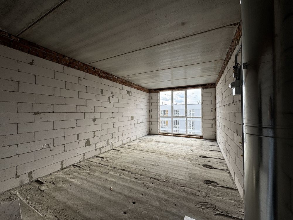 32м2 (вільне планування), перестінок не має. Можна зробити роздільне планування.