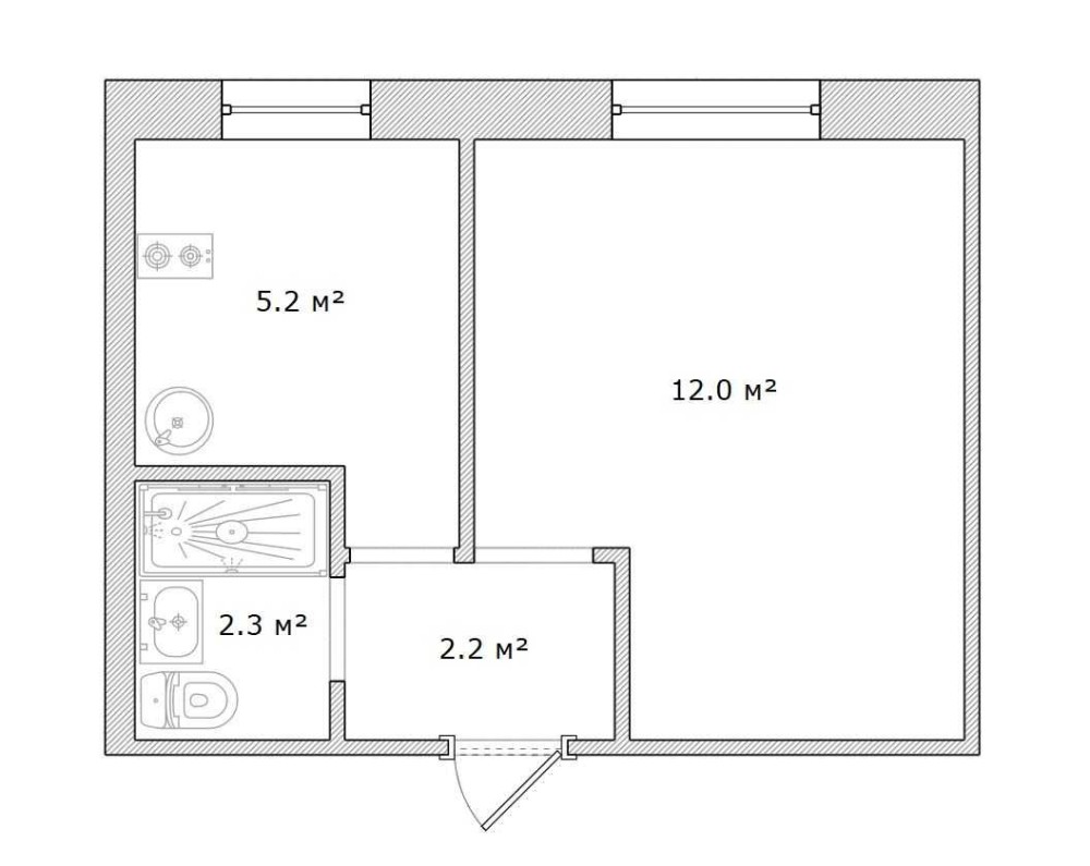 • Общая площадь 22 м2