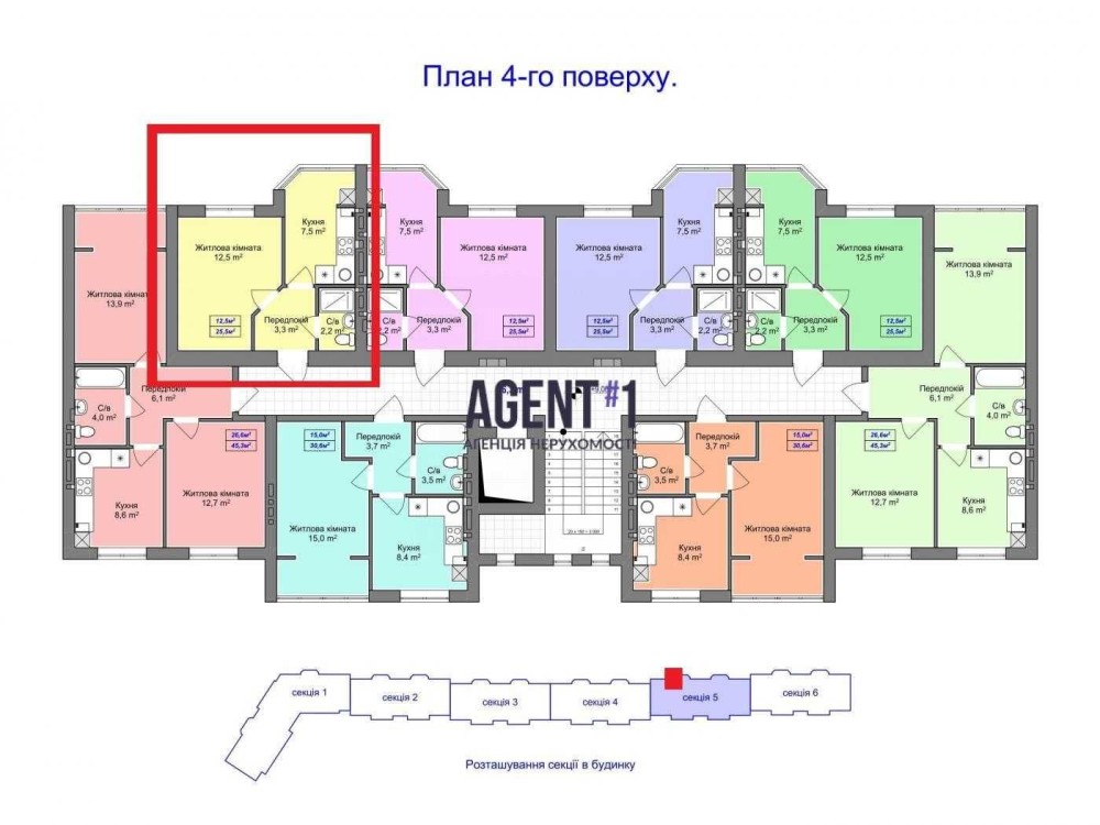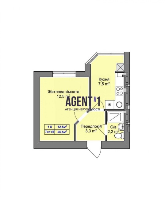 • Общая площадь 25.5 м2