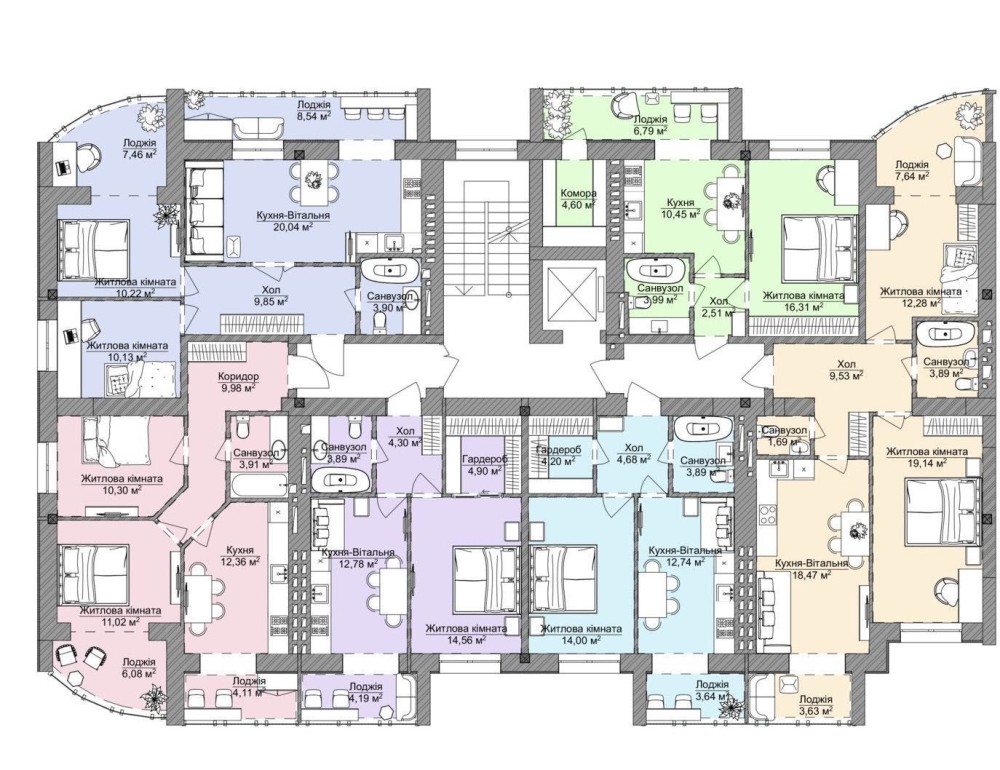 2 кімнатні площею від 65-70кв.м