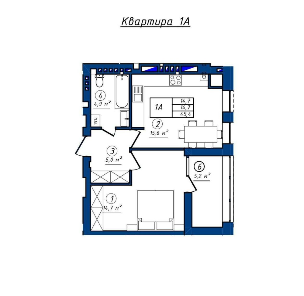 • Общая площадь 45.4 м2