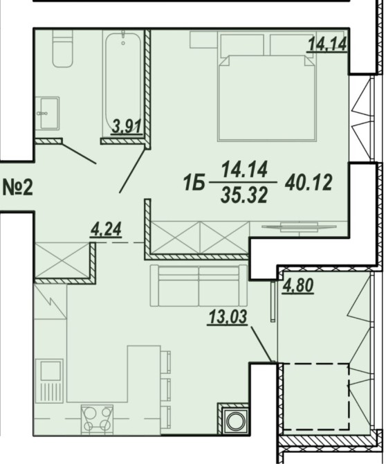 • Общая площадь 40 м2