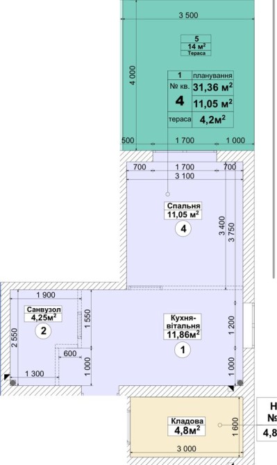 ‼️1 кімнатна 27м2 + 16м2 ( земельна ділянка ) - фото 4