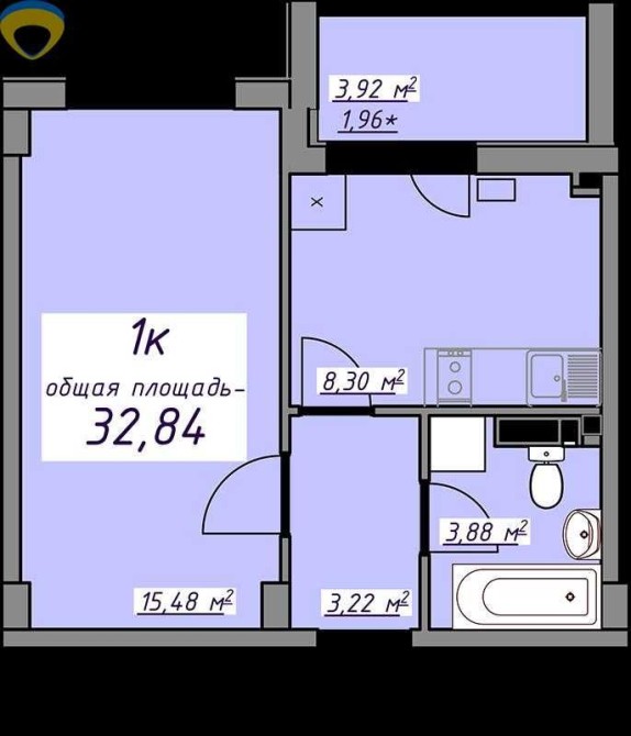 • Общая площадь 32.84 м2