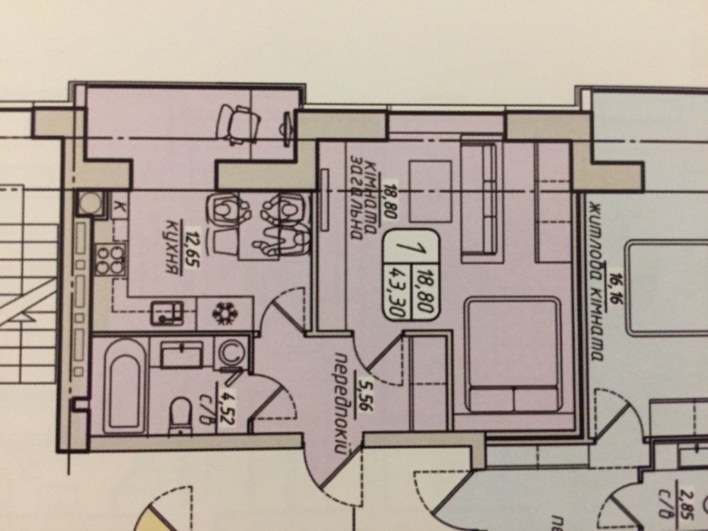 • Общая площадь 43 м2