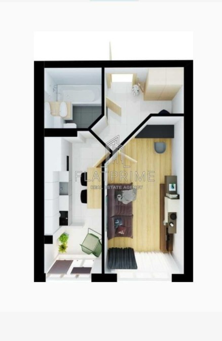 Планування квартири включає окрему кухню з лоджією, просторий санвузол і кімнату. Є можливість зробити окремий невеликий передпокій.