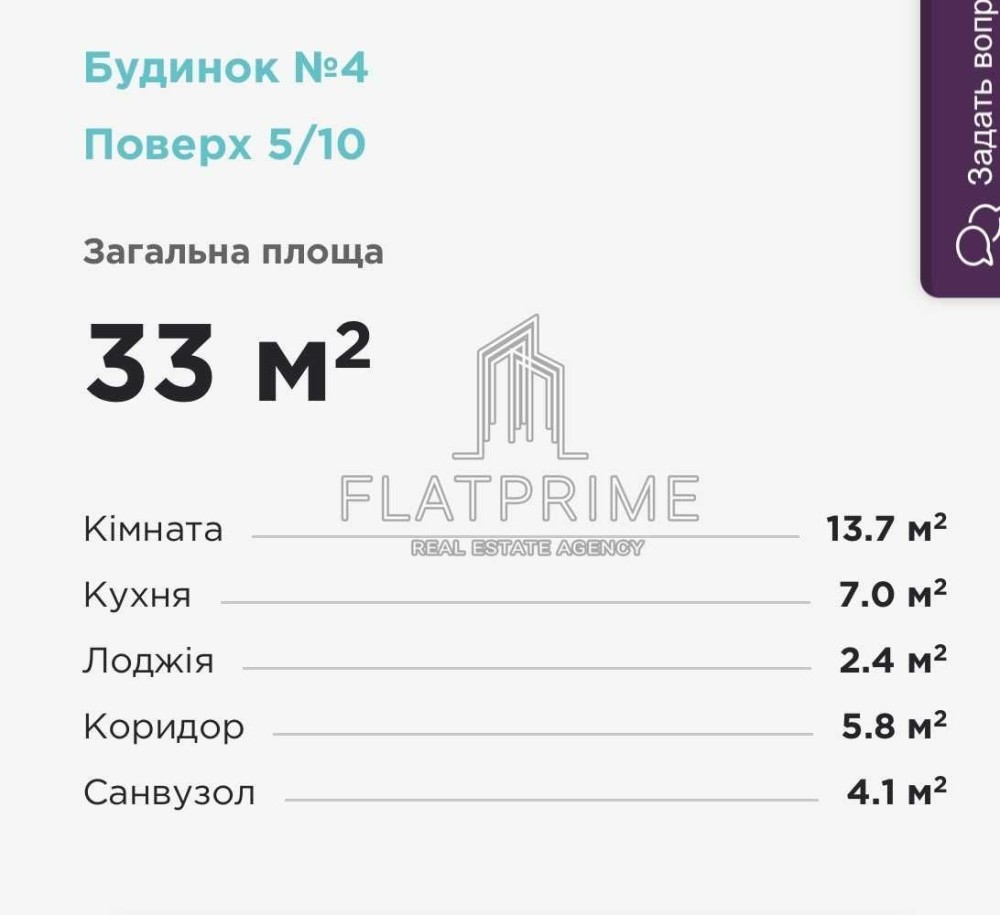 • Общая площадь 33 м2