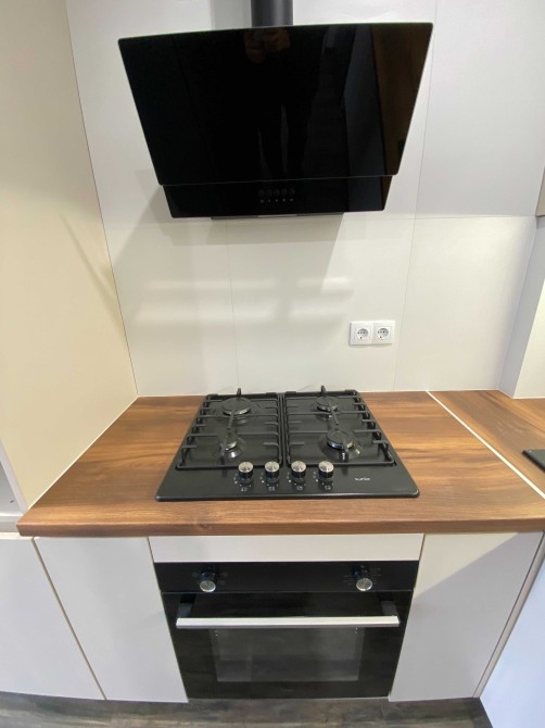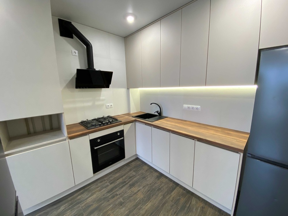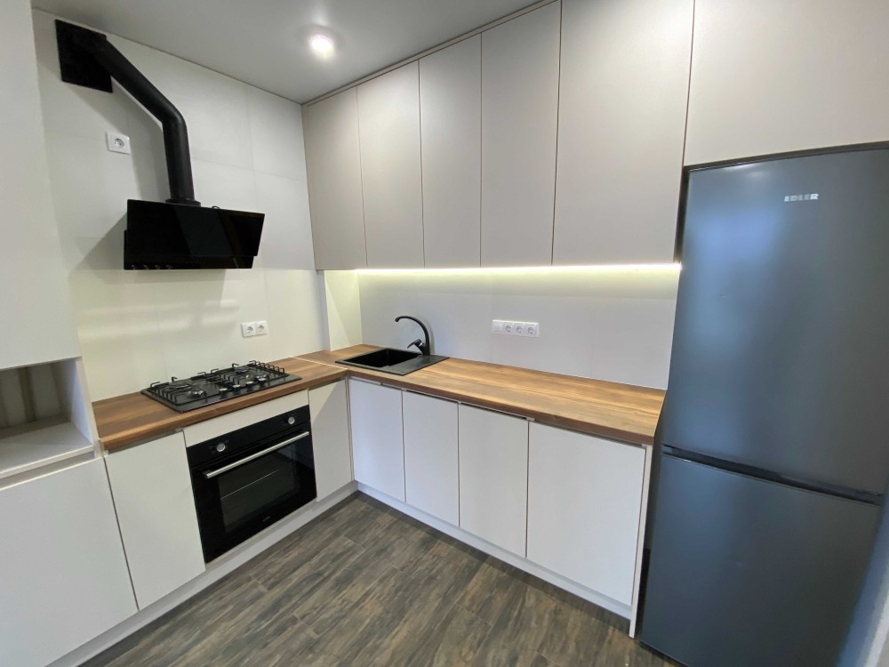 Меблі та техніка: холодильник, духова шафа, варильна поверхня, витяжка, пральна машина