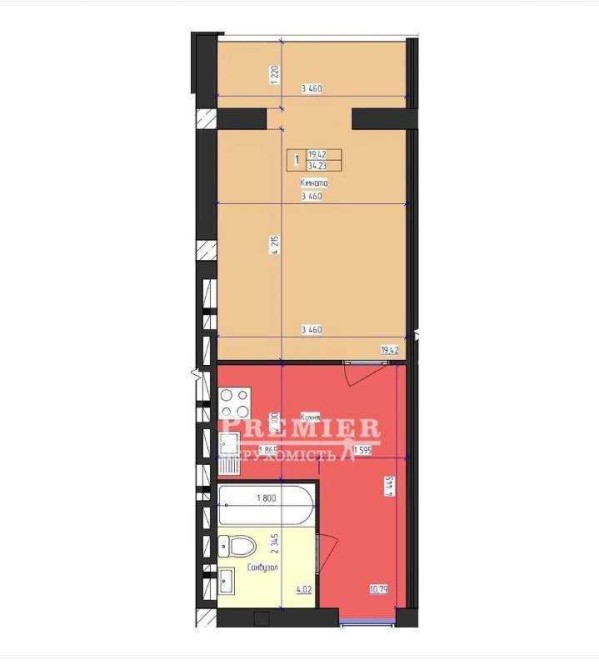 • Общая площадь 34 м2