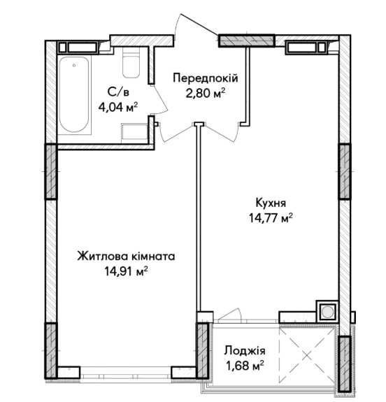 Площа — 38.3 м²