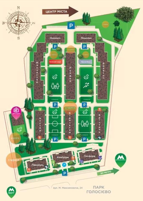 Зелені зони, лаунж-простори, дитячі майданчики