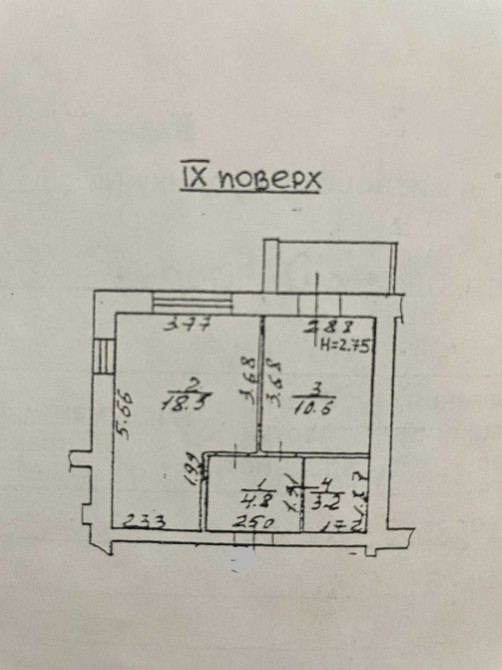 Квартира загальною площею 40 м2, житлова 18.5 м2 і кухня 10.6 м2 з виходом на засклену лоджію.