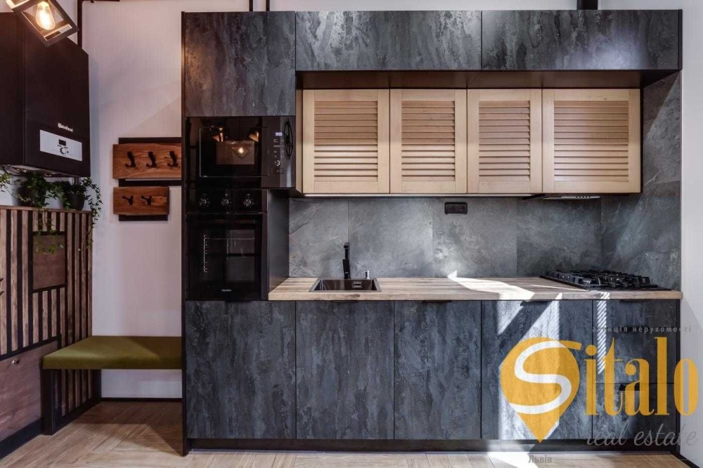 Квартира з ремонтом та дизайнерськими меблями з натурального дерева в поєднанні з металом .