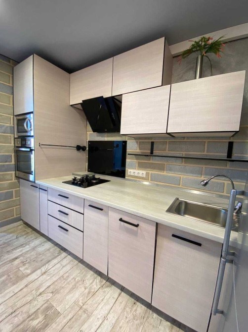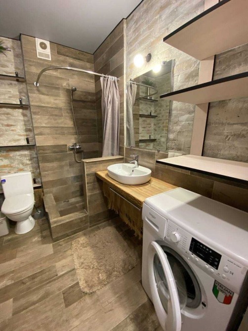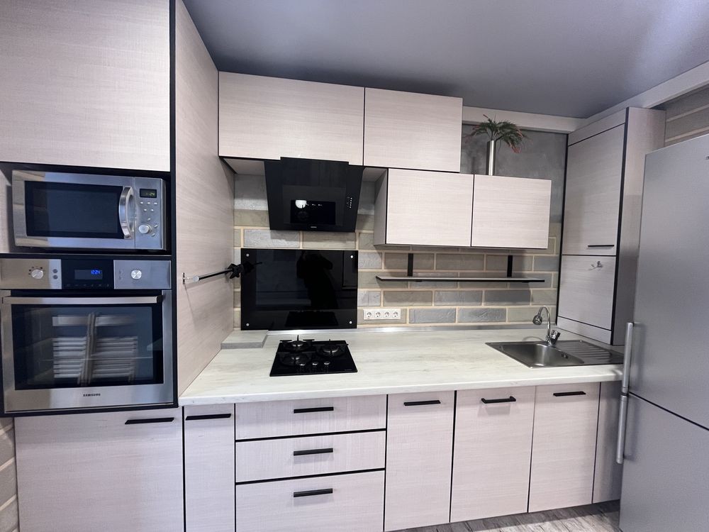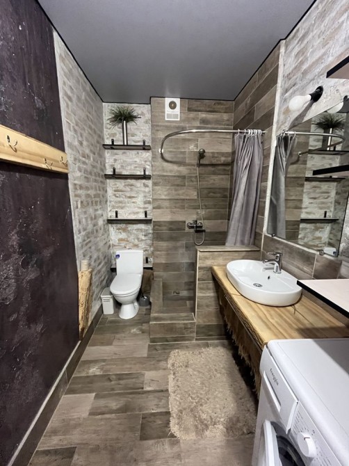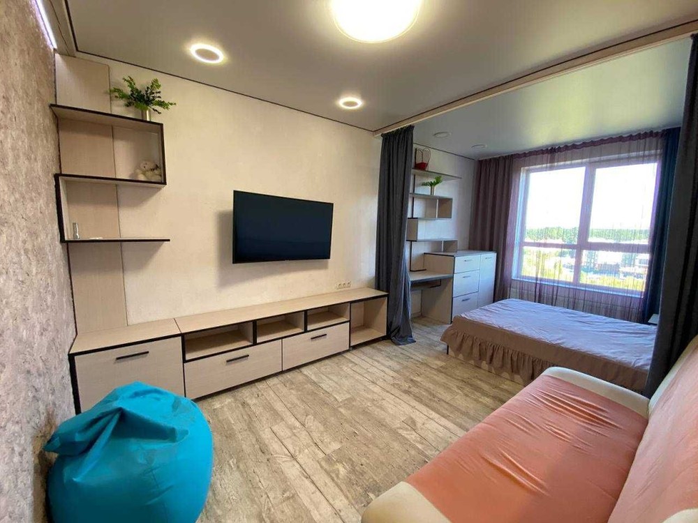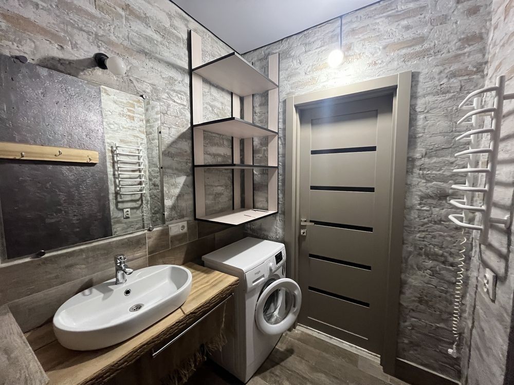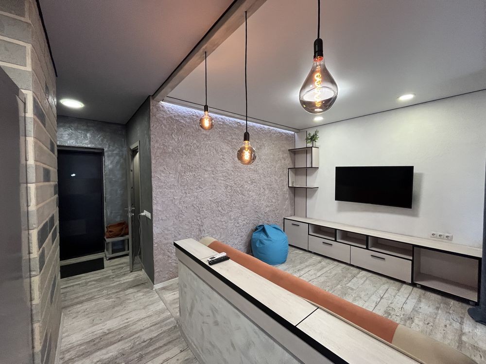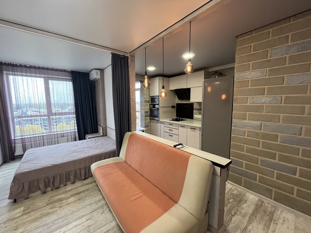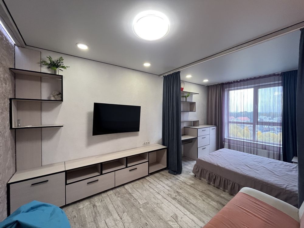 Виконано сучасне перепланування у формат студії — це створює відчуття простору, легкості та свободи. Інтер’єр продуманий до дрібниць: комфортна зона відпочинку, затишна спальня, функціональна кухня з усією необхідною технікою та стильний санвузол.