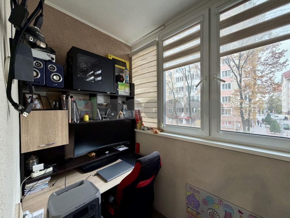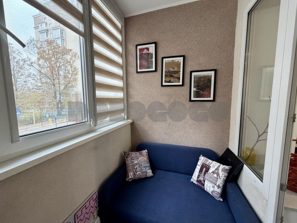 Є засклений балкон з теплою підлогою, використовується як робоче місце, також на балконі розташований розкладний диван.