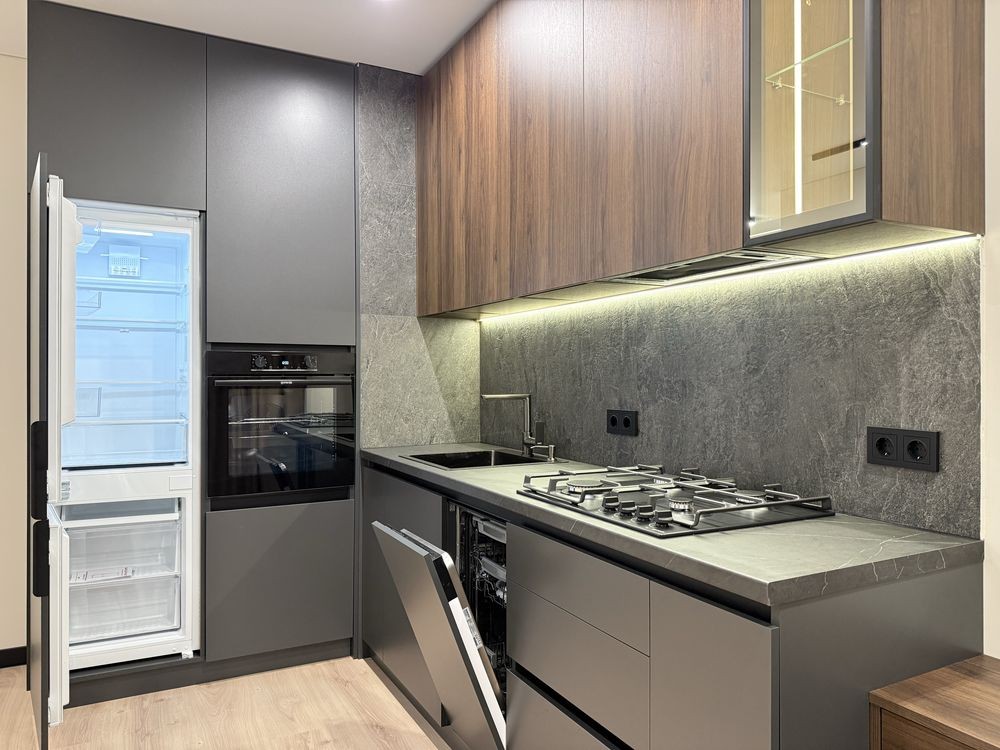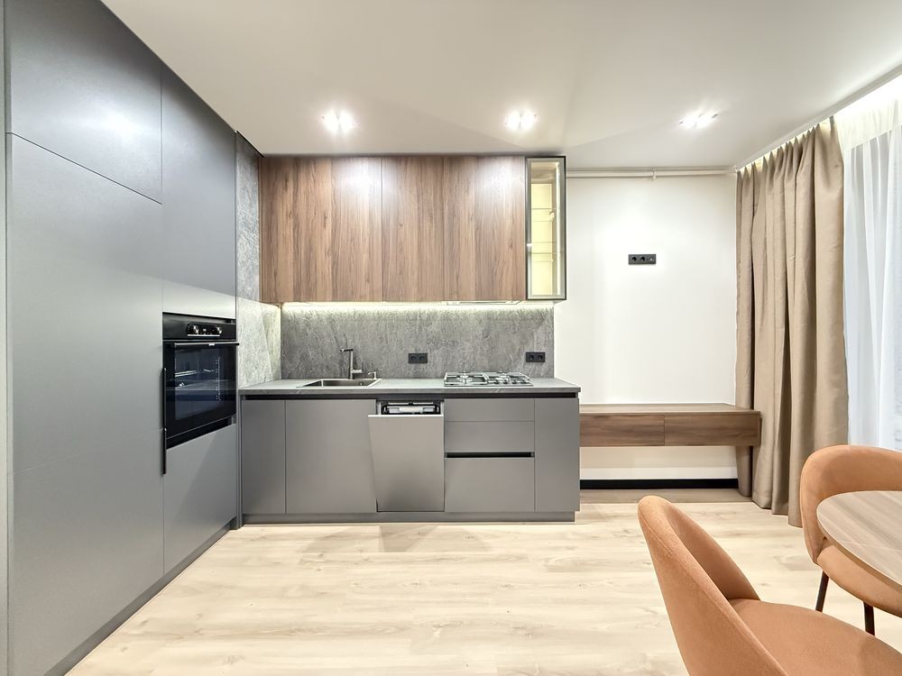 Простора кухня. Вбудована побутова техніка. Окремий Гардероб. Кухня з холодильником, духовою шафою, газовою поверхнею, посудомийною машиною. Кімната з двоспальним ліжком, бʼюті зоною. Встановлена вся сантехніка, підігрів підлоги.