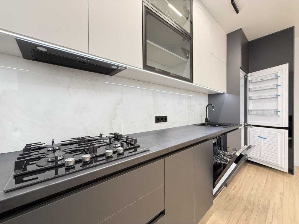 Простора кухня. Вбудована побутова техніка. Окремий Гардероб. Кухня з холодильником, духовою шафою, газовою поверхнею, посудомийною машиною. Кімната з двоспальним ліжком, шафою, Кондиціонер. Встановлена вся сантехніка, підігрів підлоги в санвузлі.
