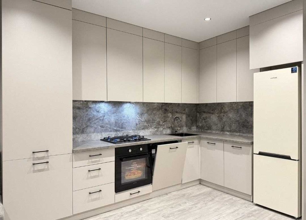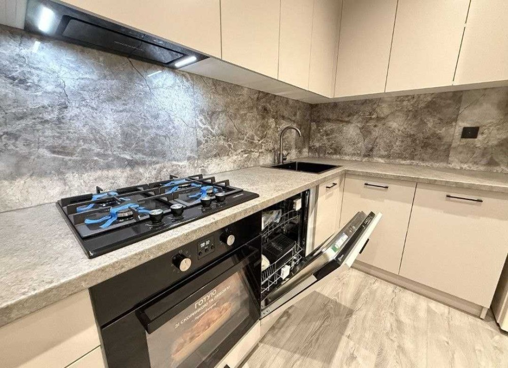 Мебльована кухня з побутовою технікою: холодильник, посудомийна машина, духова піч, плита. Шафа в коридорі. Пральна машина. Ванна кімната.