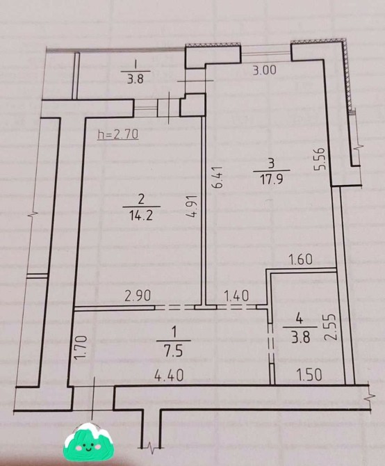 • Площадь кухни 14 м2