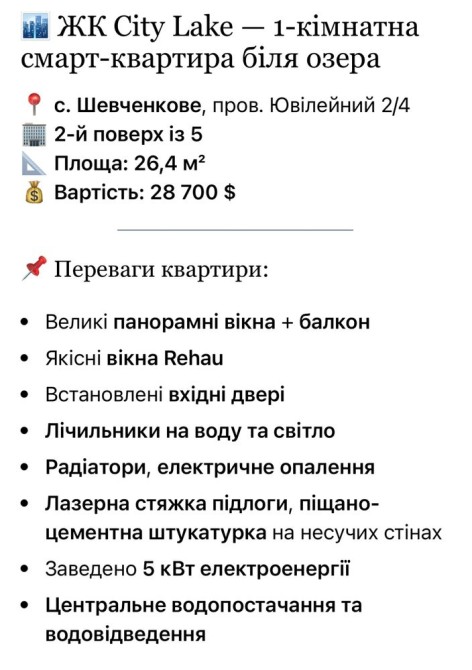 ​ЖК City Lake - 1-кімнатна смарт-квартира біля озера.
