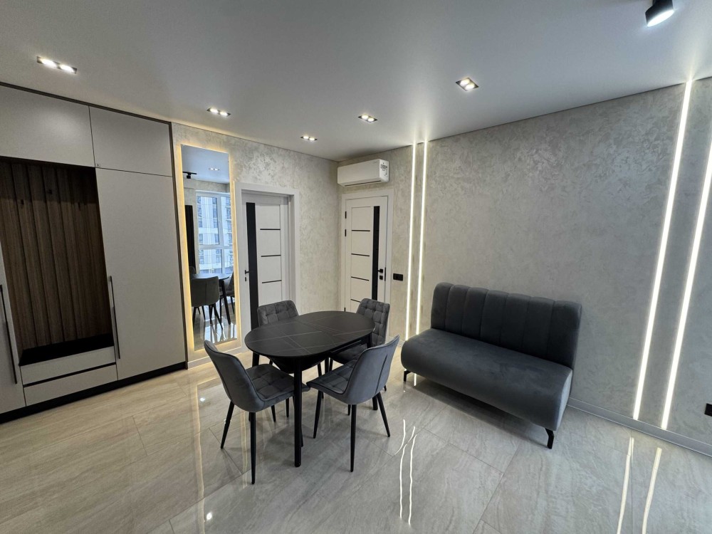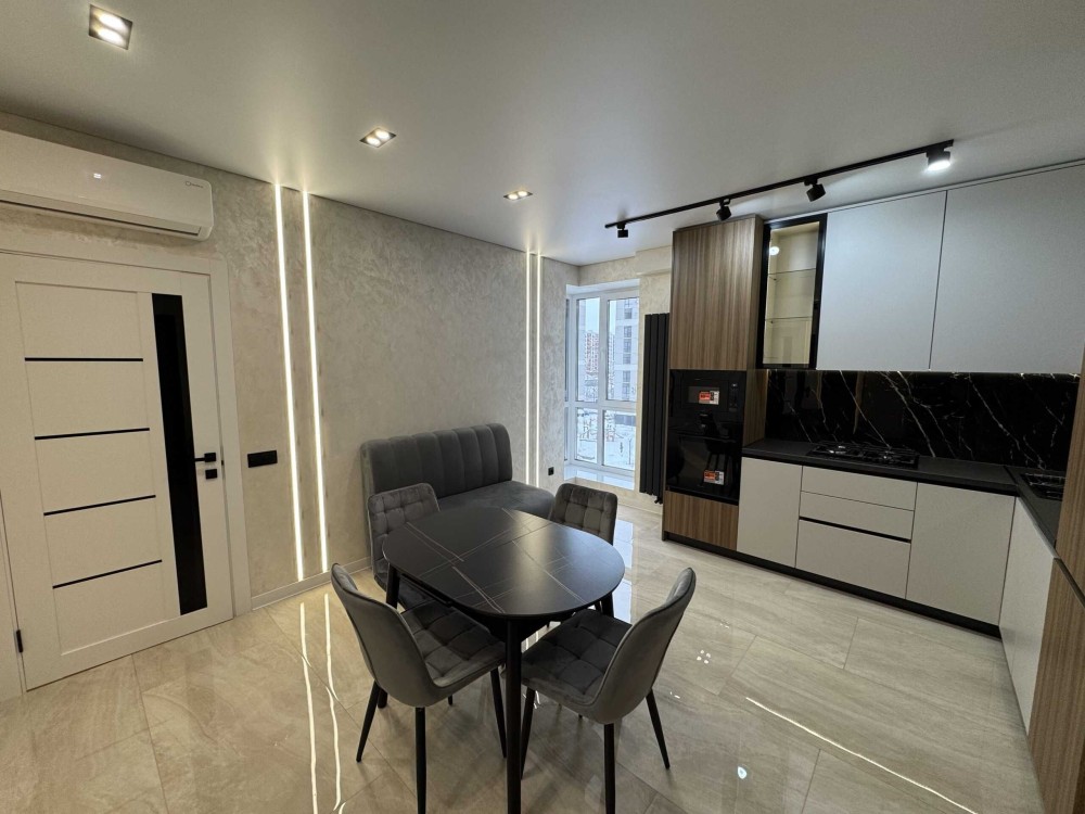 Виконано якісний ремонт із використанням добротних матеріалів. Квартира повністю укомплектована сучасними меблями та побутовою технікою — можна одразу заїжджати та жити без додаткових витрат. Продумане планування кухні-студії створює відчуття простору та затишку.