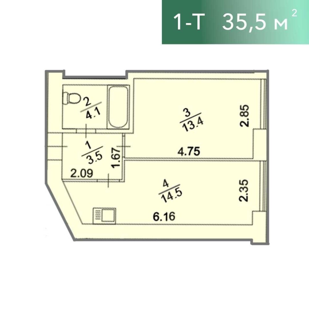 • Общая площадь 36 м2