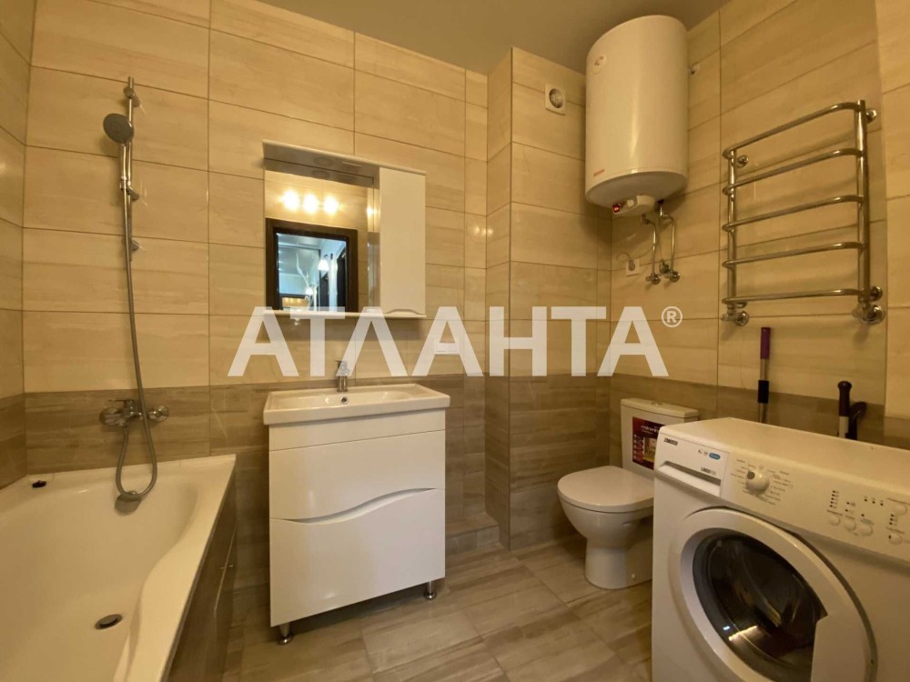 Квартира укомплектована мебелью, на кухне уютная обстановка , встроенная техника, холодильник. Смежный санузел оформлен дорогой керамической плиткой, установлены ванна, стиральная машина и бойлер.