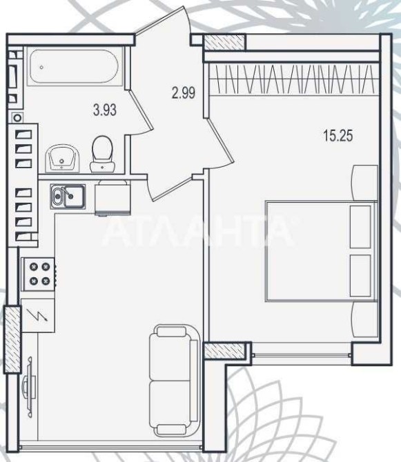 • Общая площадь 38 м2