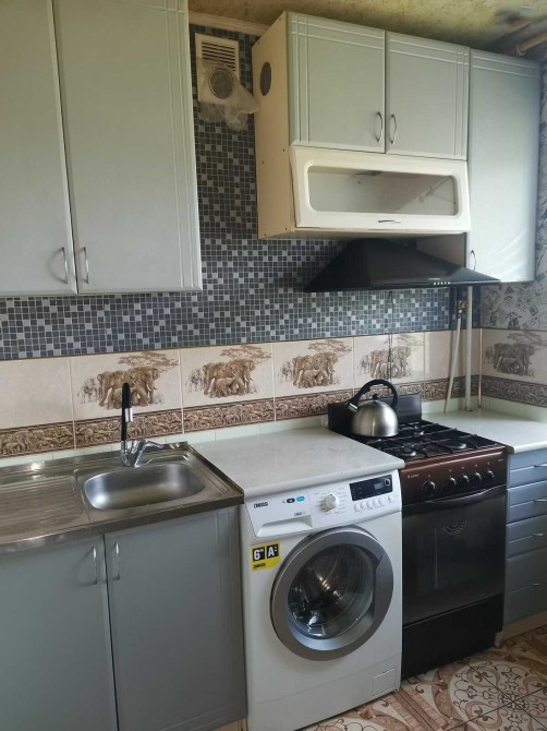 В наличии большой мягкий диван, шкаф-купе, письменный стол, стулья, кухонная мебель, холодильник, стиральная машина, газовая плита, духовой шкаф, вытяжка, бойлер.