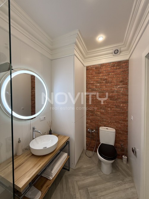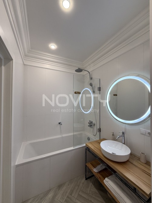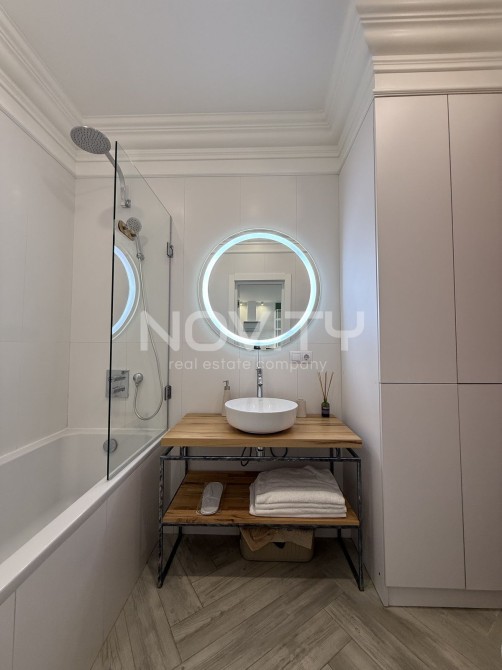У ванній кімнаті : дзеркало з підсвіткою, ванна, гігієнічний душ, пральна машина і бойлер. З усіх вікон вид на море, Аркадію і місто.