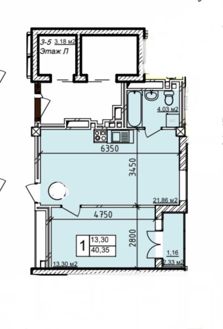 • Площадь кухни 22 м2
