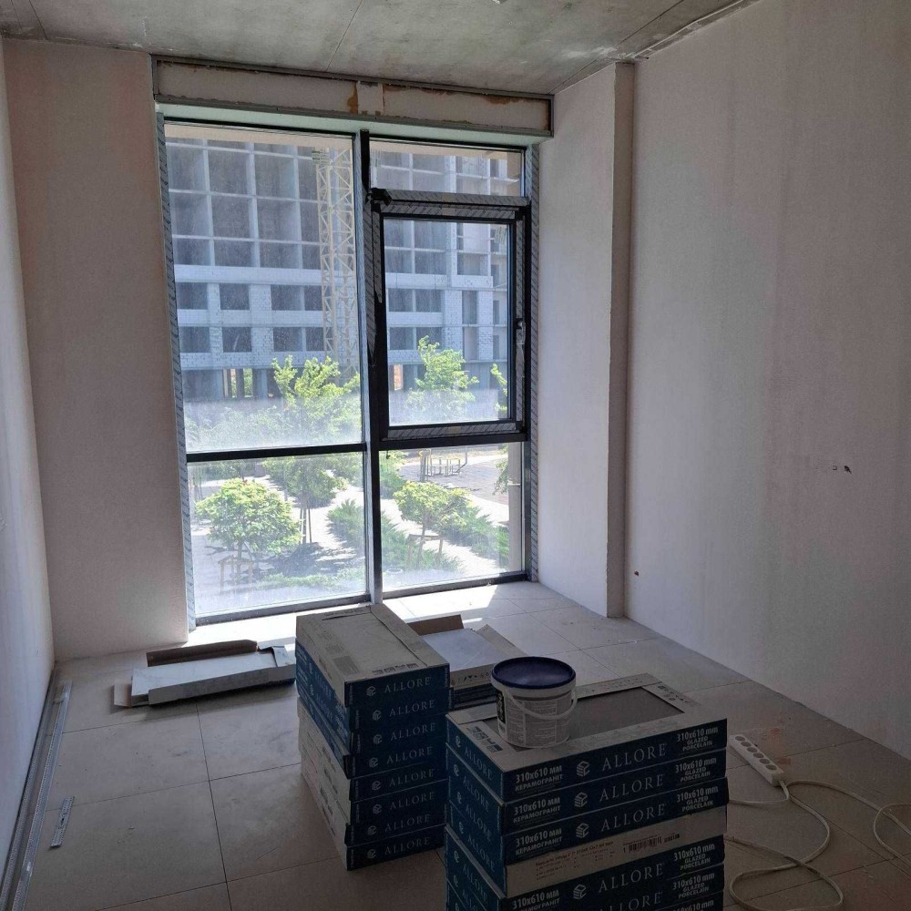 В квартире выполнен частичный ремонт; проводка по всей квартире, стены отшпаклеваны, напольная плитка в прихожей и кухне.