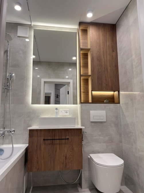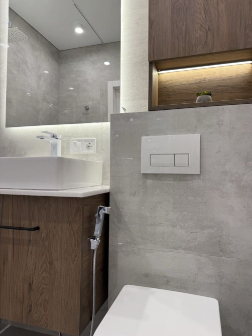Втілені сучасні дизайнерські рішення, декоративна штукатурка, авторські дзеркала; сучасне освітлення та безліч підсвіток; якісна сантехніка