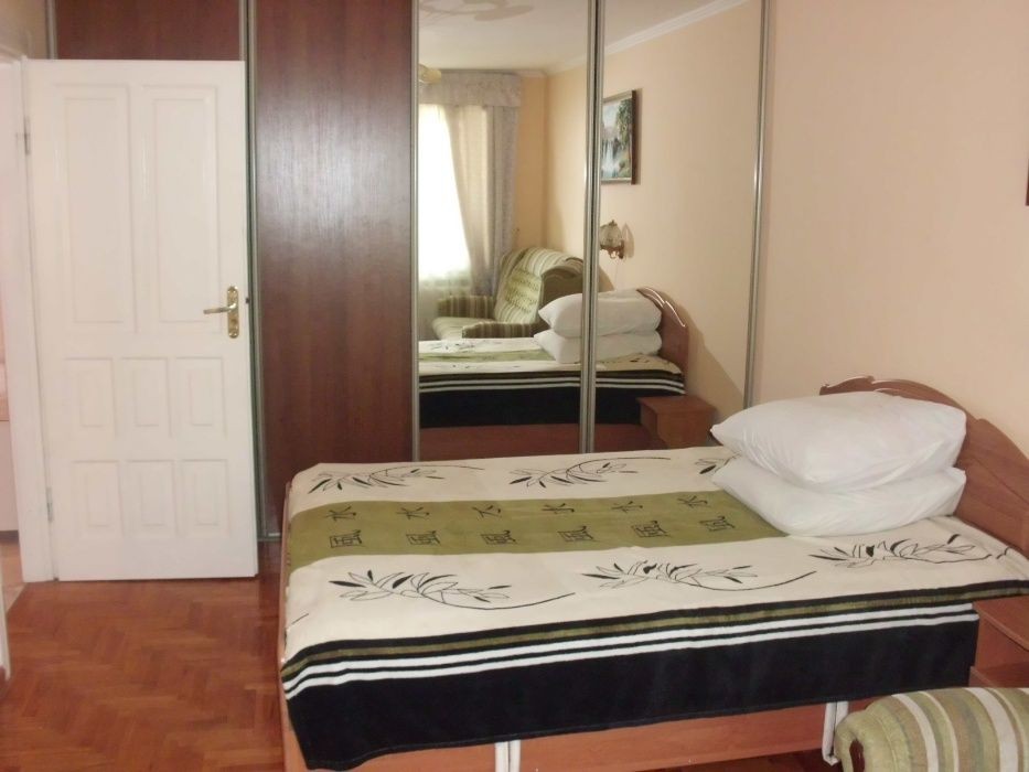 Квартира в центре Трускавца по улице Ивасюка 11, 1 этаж. 7 мин. к бювету, 5 мин. к продуктовому и промышленному базарам, супермаркетам АТБ, Европа, Славутич. В квартире есть: спутниковое ТВ, микроволновка, холодильник, фен, утюг, посуда, автономное отопление, вода круглосуточно. Большая двух спальная кровать, два раскладных кресла. Рядом находится клиника Козявкина и санаторий Карпати. У дома есть парковка и детская площадка.