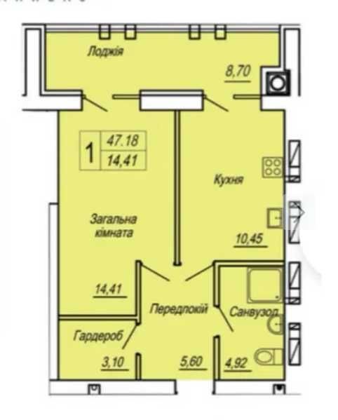 Квартира 1 кімната + кухня-студія.