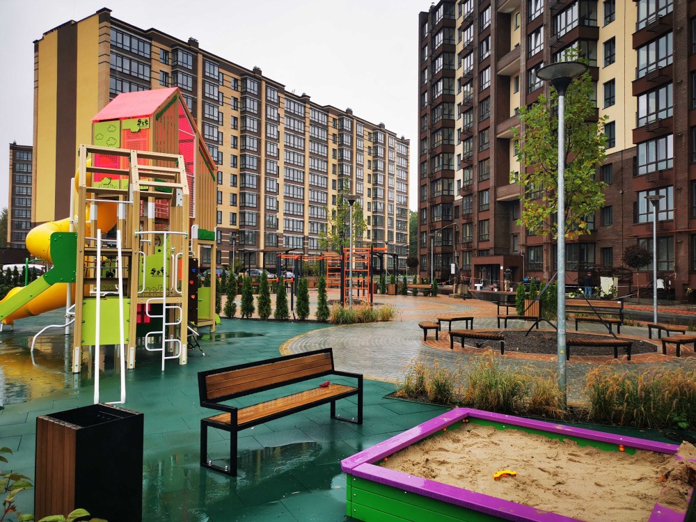 Дуже цікава та сучасна прибудинкова теріторія.