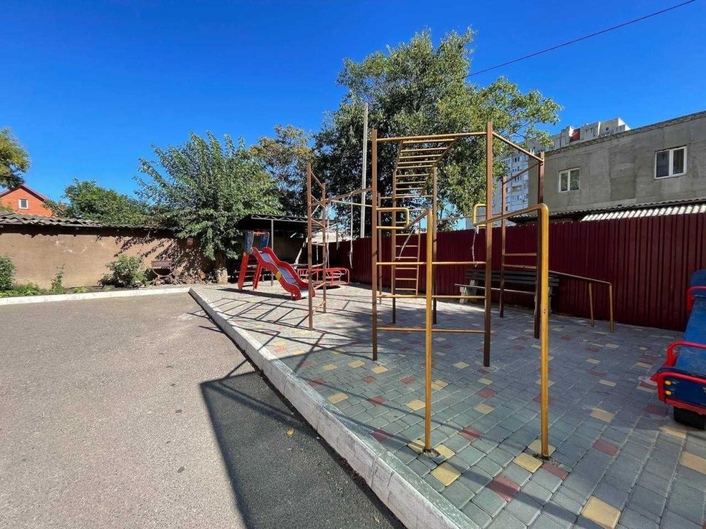 Кирпичный дом c толщина стен 80 сантиметров. Дом находится в середине квартала. Закрытая придомовая территория. Во дворе есть мангал, беседка для отдыха, детская площадка, гостевая парковка.