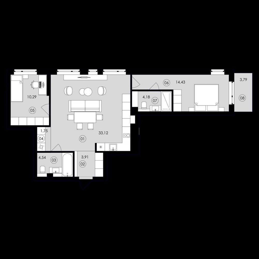 • Площадь кухни 33.12 м2
