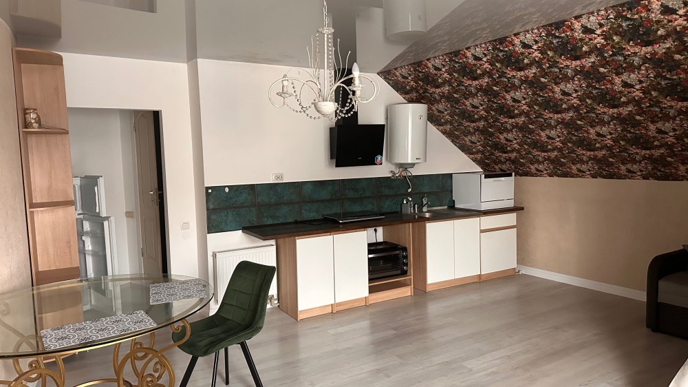 квартира студія з нішею для сну та гардеробною в приватному секторі, другий поверх. Всі зручності, окремий вхід з вулиці, меблі, побут техніка (посудомийка, бойлер, індукційна плита, холодильник, електро піч, пралка). Місця для сну: двоспальне ліжко в ніші та новий розкладний диван. Безлімітний інтернет.. Є місце для авто. Цілодобовий відео нагляд. Під час відключень є опалення , вода та безлімітний інтернет. Відстань до магазинів, кафе, нової пошти, аптек, стоматкабінету, перукарні, спортзалу, зупинки маршруток ( 9 і 32)- 500 м До ставка Теремно - 10 хвилин пішки. Лише для дівчат чи жінок, з спокійним укладом життя .В приміщенні не можна палити, влаштовувати вечірки ( закрита приватна територія). Можна з домашніми тваринами. Оплата разом з усіма комунальними та інтернетом 10500, окрема доплата щомісяця лише за електроенергію по власному лічильнику. Від власника, без комісії агентству. Агентства прошу не турбувати.