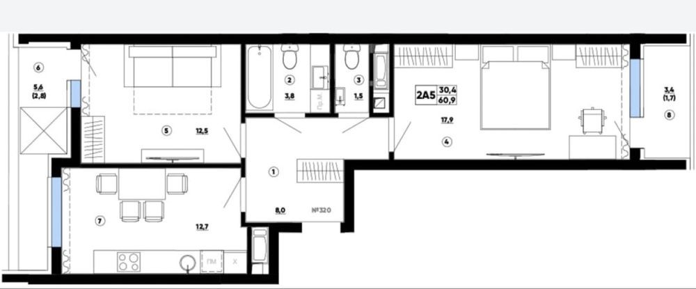 • Общая площадь 60.9 м2