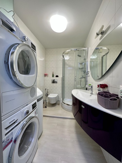 Вбудована побутова техніка Siemens: духова шафа, парова шафа, посудомийна машина, кавомашина, шафа для підігріву посуду, мікрохвильова піч, пральна машина, сушильна машина - все на гарантійному обслуговуванні (обслуговується раз на рік). Вбудований холодильник Liebherr. Чотири інверторні кондиціонери Mitsubishi (можна використовувати до -20 градусів). На кухні встановлено систему подрібнення харчових відходів
