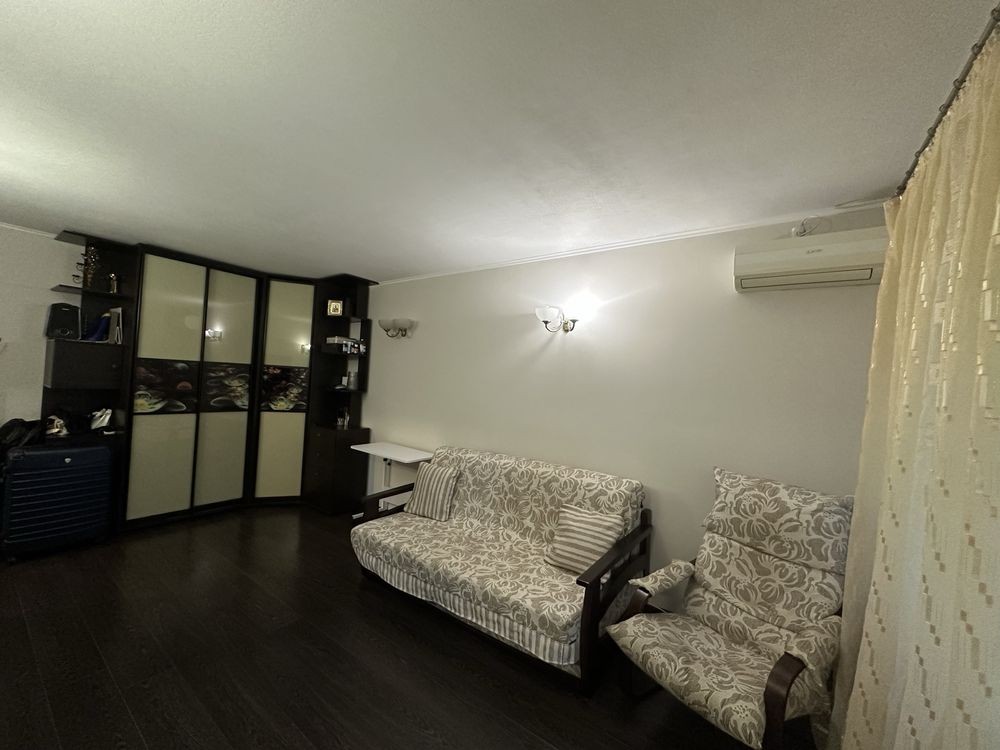 Квартира на 1/9, є балкон. Загальна площа 35м, кімната 17,7м. Замінені всі комунікації, зроблено якісний ремонт, продається з усіма меблями та технікою.