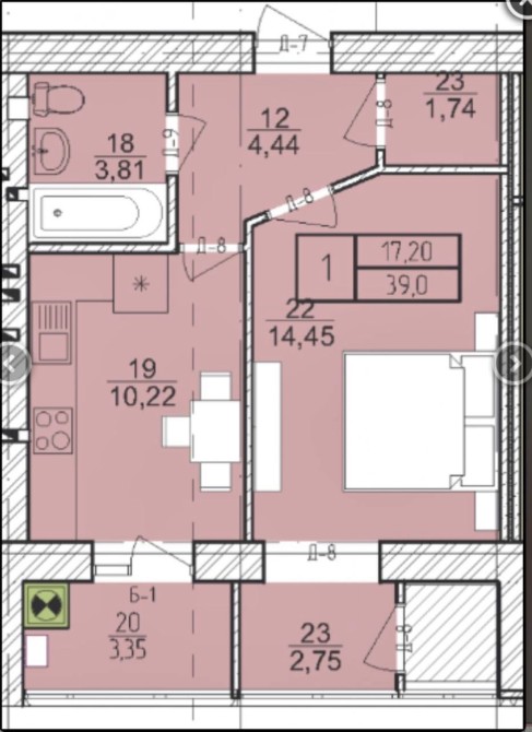 • Площа: 39 м²