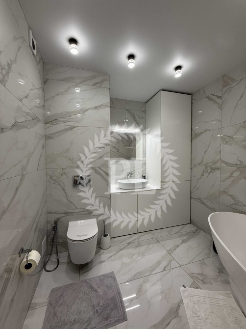 Дизайн виконано у спокійних світлих тонах, з використанням якісних матеріалів. Встановлено систему кондиціювання, бойлер, теплу підлогу.