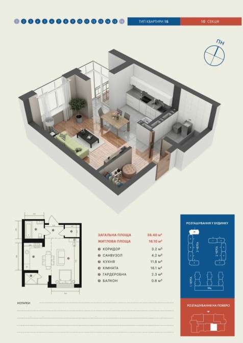 1 кімнатна квартира в ЖК Гранд Бурже 3.